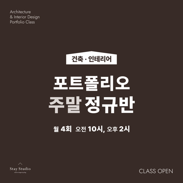 Stay Studio는 소수 정예로 건축·인테리어 포트폴리오 제작하는 교육을 하고 있습니다.